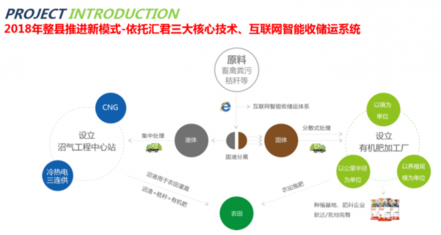 行業(yè)內(nèi)的立足與發(fā)展,僅僅依靠技術的帶動,是無法走得更久更遠的,唯有全方位的循環(huán)系統(tǒng),智能的產(chǎn)業(yè)鏈才能建立起公司整體的服務體系。于是,匯君環(huán)能在2017年商業(yè)模式上進行了創(chuàng)新,打造出整縣推進新模式,2017年國家批復了586個畜禽養(yǎng)殖大縣進行重點資金支持,匯君環(huán)能與時俱進制訂了整縣(市)的區(qū)域規(guī)劃。包括從最初的處理體系打造,到后續(xù)的技術處理打造,再到最終的肥料化和資源化產(chǎn)品的打造,通過這一條線的運營,走一個全產(chǎn)業(yè)鏈路線。另一塊,公司整合上游資源,聯(lián)合終端,下游端,種植端與農(nóng)業(yè)端,把資源掌握在自己手里,最終面向市場。