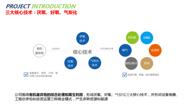 通過5年的潛心、實干積累,使匯君環(huán)能擁有了自己的一套核心技術模式,即厭氧與好氧相結(jié)合的工藝模式,保證每一個項目達到效果最優(yōu)化。厭氧路線,利用公司厭氧專利核心設備,將有機廢棄物轉(zhuǎn)化成沼氣,用來發(fā)電、脫碳制壓縮生物天然氣和供熱;好氧路線,利用智能化高溫好氧設備,直接產(chǎn)生符合國家標準的525有機肥,根據(jù)肥料客戶需求,還會再添加復配一些菌種,生產(chǎn)菌機肥。兩條核心技術路線綜合運用發(fā)展的基本策略,使公司在行業(yè)內(nèi)奠定了厚實的基礎,區(qū)域整體規(guī)劃綜合處治理,實現(xiàn)了有機廢棄物資源化和肥料化相結(jié)合的匯君模式。