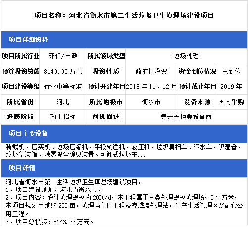 中項網(wǎng)獨家授權(quán)北極星固廢網(wǎng)發(fā)布最新垃圾處理項目(2018年11月20日更新),其中包括生活垃圾一體化PPP項目、垃圾填埋場項目、垃圾焚燒發(fā)電項目等。具體內(nèi)容如下:
