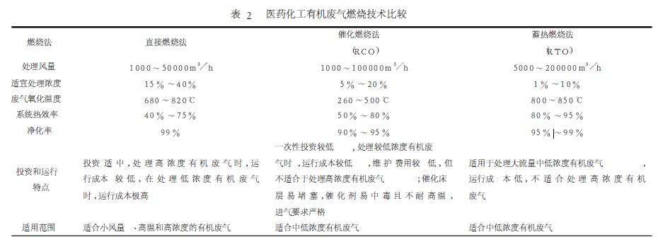 現(xiàn)階段,我國(guó)對(duì)醫(yī)藥化工行業(yè)揮發(fā)性有機(jī)廢氣的氧化治理技術(shù)主要包括:光催化氧化、直接燃燒法、催化燃燒技術(shù)及RTO等,各種處理措施針對(duì)醫(yī)藥化工有機(jī)廢氣存在一定優(yōu)劣性[2~5],具體匯總見(jiàn)表2。