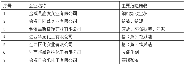 附件: 1、金溪縣縣級危險廢物重點(diǎn)監(jiān)管企業(yè)(2018年更新)
