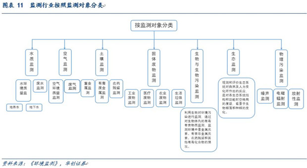 環(huán)境監(jiān)測行業(yè)按照監(jiān)測對象分類,可分為水質(zhì)監(jiān)測、空氣監(jiān)測、土壤監(jiān)測、固體廢物監(jiān)測、生物監(jiān)測與生物污染監(jiān)測、生態(tài)監(jiān)測和物理污染監(jiān)測。而每個子板塊可以進一步劃分為環(huán)境質(zhì)量監(jiān)測和污染源監(jiān)測,以空氣監(jiān)測為例,可以劃分為空氣環(huán)境質(zhì)量監(jiān)測和廢氣監(jiān)測,前者主要監(jiān)測環(huán)境中污染物的分布和濃度,以確定環(huán)境質(zhì)量狀況;后者的主要目的是控制有害物質(zhì)的排放量。對于不同的監(jiān)測領(lǐng)域和監(jiān)測目的也有相對應(yīng)的不同監(jiān)測設(shè)備,大氣監(jiān)測設(shè)備可以分為CO、SO2、NOX、O3、PM10、PM2.5、顆粒物監(jiān)測設(shè)備等,大型監(jiān)測點如國控點、省控點包含以上多個模塊,而網(wǎng)格化布點的小型化監(jiān)測設(shè)備主要用于監(jiān)測以PM2.5為主的單項指標(biāo)。