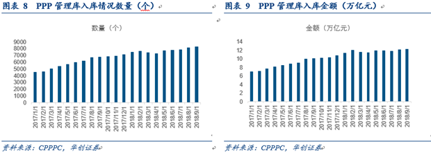 從財政部政府和社會資本合作中心18年三季報披露情況來看,三季度管理庫項目環(huán)比二季度新增540個、投資額3,471億元。1-9月,管理庫新增項目1,152個、投資額1.5萬億元。截至2018年三季度,管理庫累計項目數(shù)8,289個、投資額12.3萬億元。整體呈穩(wěn)中有升的趨勢。