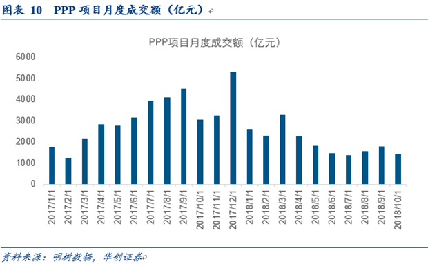 但從明樹數(shù)據(jù)公布的PPP項目成交情況來看,今年以來PPP成交額顯著下滑,由2017年12月份的5292億下滑至2018年10月的1423.1億元,降幅高達73.11%。