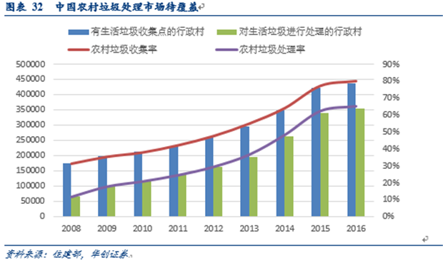 2016年,國務(wù)院印發(fā)的《“十三五”生態(tài)環(huán)境保護規(guī)劃》提出的目標(biāo):實現(xiàn)90%以上村莊的生活垃圾得到有效治理,推進垃圾處理設(shè)施和服務(wù)向農(nóng)村延伸,新增完成對13萬個建制村完成環(huán)境綜合整治。