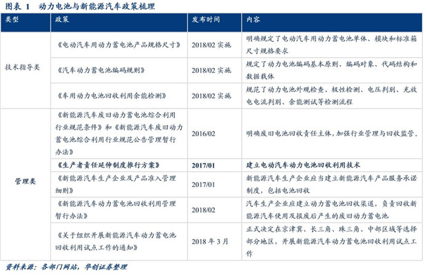 新能源汽車政策是近年新能源汽車發(fā)展的重要風(fēng)向標(biāo),一方面,十三五規(guī)劃從頂層對新能源汽車的發(fā)展指出方向,另一方面,針對產(chǎn)品準(zhǔn)入、電池供應(yīng)、充電基礎(chǔ)設(shè)施、能耗管理和補貼等做出了明確要求。而隨著動力電池即將步入報廢期,2017年以來針對動力電池技術(shù)規(guī)范、管理等方面推出了一系列政策,尤其是2018年2月以來對動力電池的規(guī)格尺寸、編碼、余能監(jiān)測等技術(shù)規(guī)范的統(tǒng)一將進一步推動梯次利用等回收手段的高效應(yīng)用。