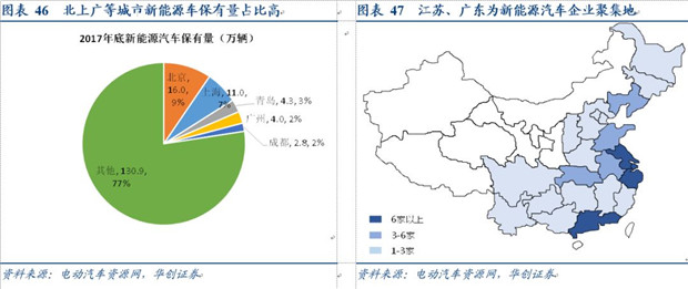 目前國內(nèi)新能源汽車的制造企業(yè)和推廣政策集中在上海、江蘇、廣東等東南部地區(qū),而發(fā)達的一二線城市仍占據(jù)新能源汽車保有量前列。截至2017年底,以北上廣等為代表的前五城市新能源汽車保有量約為38.1萬輛,占全國153萬輛的23%。同樣地,動力電池的回收渠道方面同樣呈現(xiàn)較強的區(qū)域性,且產(chǎn)能分布與能源汽車推廣地區(qū)的重合度也相對較高。由于在回收過程中運輸、處理等環(huán)保要求高,因此目前行業(yè)內(nèi)的龍頭企業(yè)主要通過自建生產(chǎn)線、并購和與上下游合作等多種方式在前端渠道(即回收端)和后端渠道(即回收產(chǎn)物的下游利用端)進行拓展,從而提高區(qū)域覆蓋面。其中,以光華科技、格林美等為代表的企業(yè)利用主業(yè)優(yōu)勢,從供給和需求兩段提早布局,一方面拓寬前端回收渠道的覆蓋地域,另一方面通過自建生產(chǎn)線擴充產(chǎn)能,并與利用企業(yè)簽訂戰(zhàn)略合作協(xié)議等方式保障下游需求順暢。