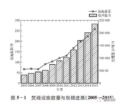 十二五期末共建成焚燒設(shè)施257座,總焚燒處理規(guī)模23.5萬(wàn)噸/日