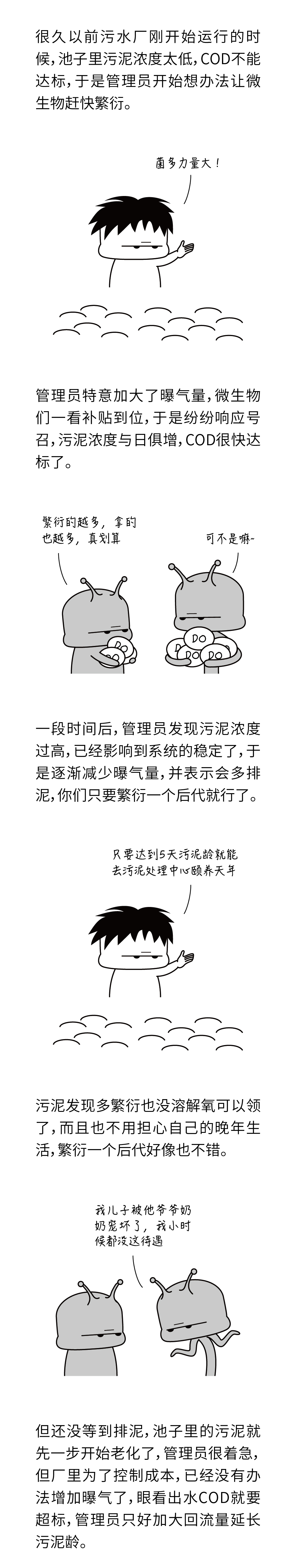 產(chǎn)生原因:缺少營養(yǎng),絲狀菌或固著型纖毛蟲大量繁殖,菌膠團(tuán)生長不良;PH值高或過低,引起絲狀菌大量生長,污泥松散,體積偏大。解決辦法:按營養(yǎng)配比調(diào)整進(jìn)水負(fù)荷,氨氮滴加量,保持?jǐn)?shù)日污泥顏色可以恢復(fù);調(diào)整進(jìn)水pH值,保持曝氣池pH值在6~8之間,長期保持PH值范圍才能有效防止污泥膨脹。產(chǎn)生原因:曝氣池溶解...