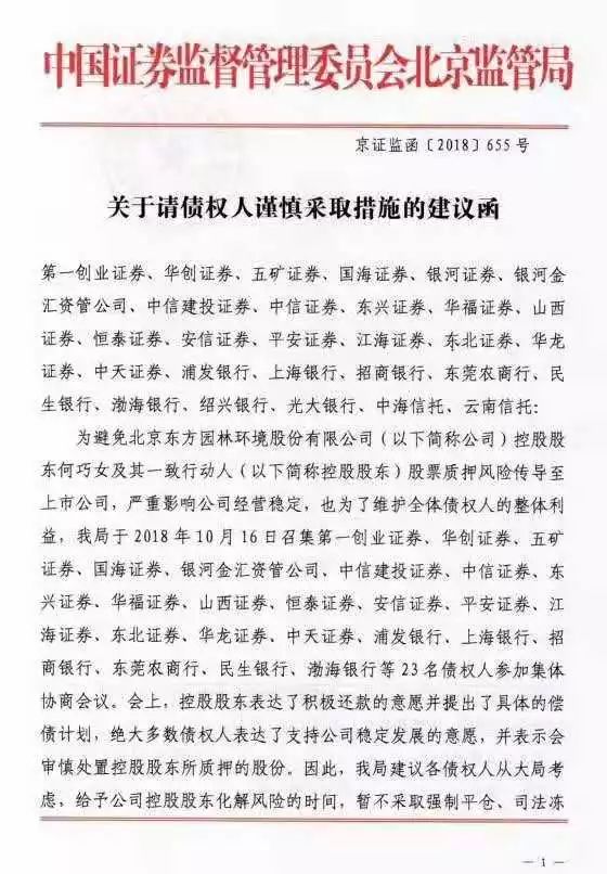 最近空降熱搜的企業(yè)中,有兩家公司成功吸引了天眼妹的目光。一家公司超級“大牌”,陷入股票質(zhì)押危機后,居然能震動北京證監(jiān)局出手相救;另一家公司更慘,法人和第一大股東因積壓的債務危機爆發(fā)被列為失信被執(zhí)行人。巧合的是,這兩家企業(yè)都是曾經(jīng)以“股王”“不差錢”等形象行走A股的?!本┳C監(jiān)局給債權(quán)人的建議函東方園...