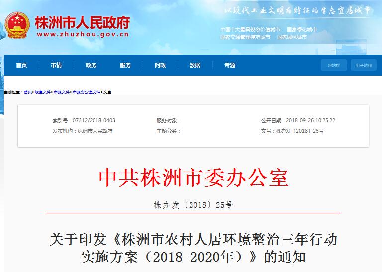 近日,市三年行動實施方案(2018-2020年)發(fā)布,詳情如下:中共株洲市委辦公室株洲市人民政府辦公室關(guān)于印發(fā)《株洲市農(nóng)村人居環(huán)境整治三年行動實施方案(2018-2020年)》的通知各縣市區(qū)黨委和人民政府,市直機關(guān)各單位、各人民團體,各企事業(yè)單位:《株洲市農(nóng)村人居環(huán)境整治三年行動實施方案(2018-...