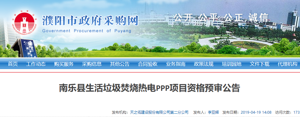 中國環(huán)聯(lián)網(wǎng)獲悉,4月19日,河南濮陽南樂縣生活垃圾焚燒熱電PPP項目發(fā)布資格預(yù)審公告,采購控制價為每噸垃圾補(bǔ)貼費不超過62.87元。項目概況及采購內(nèi)容項目名稱:南樂縣生活垃圾焚燒熱電PPP項目。項目編號:HNTZL-2019-016采購方式:公開招標(biāo)。項目概況:本項目設(shè)計日處理垃圾量為600噸/日,...