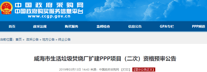 中國環(huán)聯(lián)網(wǎng)獲悉,3月13日,山東省威海市生活垃圾焚燒廠擴建PPP項目發(fā)布二次資格預(yù)審公告。1、項目概況:1.1項目名稱:威海市生活垃圾焚燒廠擴建PPP項目1.2項目編號:SDGP3710002019020000221.3采購人:威海市園林管理局2、采購需求2.1本項目主要工程內(nèi)容為500噸/日處理量...