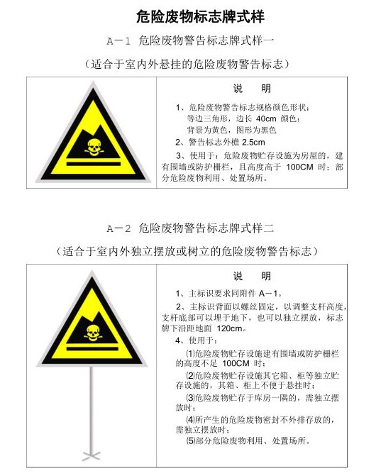 危險廢物標(biāo)志牌全新改版,標(biāo)志內(nèi)圖案與老版稍有變化危險廢物標(biāo)簽牌,主要是用于粘貼和系掛于危險廢物包裝容器外的標(biāo)簽危險廢物分類標(biāo)牌有爆炸、易燃、助燃、刺激性、有毒、有害腐蝕性、石棉,新版標(biāo)志牌式樣如下圖。醫(yī)療廢物標(biāo)志牌,分為醫(yī)療廢物暫存、處置場所警示標(biāo)志,醫(yī)院科室醫(yī)療廢物收集點警示標(biāo)志,醫(yī)療廢物轉(zhuǎn)運車警...