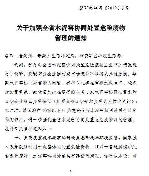 近日,河北省生態(tài)環(huán)境廳辦公室發(fā)布了關(guān)于加強(qiáng)全省水泥窯協(xié)同處置危險(xiǎn)廢物管理的通知,對(duì)水泥窯協(xié)同處置危險(xiǎn)廢物環(huán)境管理做出明確指示,詳情如下:延伸閱讀:貴州:加快發(fā)展垃圾發(fā)電 推廣水泥窯協(xié)同處置城市垃圾(附重點(diǎn)任務(wù))