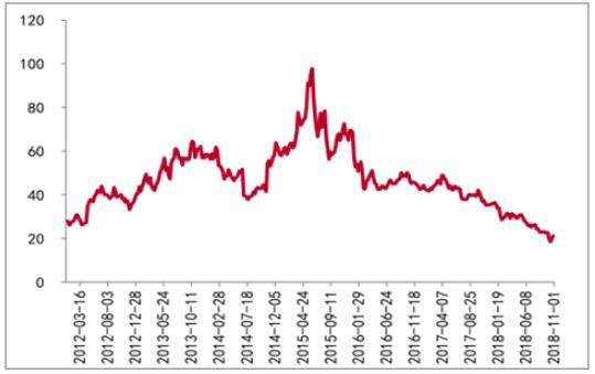 2018Q3環(huán)保板塊整體實(shí)現(xiàn)營(yíng)業(yè)收入1108.3億,同比增加12.5%,增速下滑10.6pct,整體歸母凈利潤(rùn)為118.9億,同比減少17.8%,環(huán)保板塊收入端增速出現(xiàn)下滑趨勢(shì),而利潤(rùn)端則首次出現(xiàn)負(fù)增長(zhǎng)。2018Q3環(huán)保板塊整體毛利率為31.4%,同比減少1.1pct,毛利率下降或與上游原材料成本提...