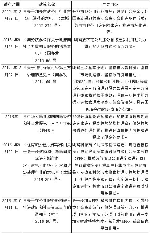 我國鼓勵發(fā)展環(huán)境衛(wèi)生管理行業(yè)。根據(jù)我國《產(chǎn)業(yè)結(jié)構(gòu)調(diào)整指導目錄》(2011 年本),環(huán)境衛(wèi)生管理行業(yè)屬于鼓勵類第三十七項“其他服務(wù)業(yè)”和第三十八項“環(huán)境保護與資源節(jié)約綜合利用”。近年來國家先后發(fā)布多項促進行業(yè)發(fā)展的重要政策文件。我國對環(huán)境衛(wèi)生管理及相關(guān)行業(yè)的主要產(chǎn)業(yè)政策如下:近年來,國家政策的陸續(xù)出臺...