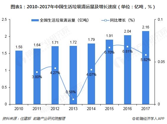 城鄉(xiāng)一體化腳步加快 生活垃圾清運(yùn)量逐年上升隨著人口增長以及城鄉(xiāng)一體化腳步的加快,城鎮(zhèn)人口越來越集中,生活習(xí)慣和環(huán)境均有了較大的改變,而伴隨而來的還有越積越多的生活垃圾,生活垃圾處理成了和我們生活息息相關(guān)的事情。根據(jù)中國住建部2018年發(fā)布的《中國城市建設(shè)統(tǒng)計(jì)年鑒》數(shù)據(jù)顯示,2010年以來,我國生活垃...