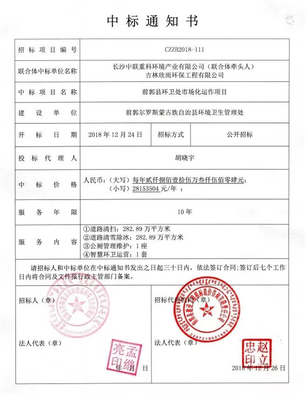 2019年辭舊迎新之際,中聯(lián)環(huán)境城市服務(wù)項目連中四元,喜報頻傳。新年前后,中聯(lián)環(huán)境連續(xù)斬獲吉林省前郭項目、江西省安義項目、江西省蓉江項目3個城市環(huán)境服務(wù)運(yùn)營項目,同時某城市環(huán)境綜合PPP項目已處于預(yù)中標(biāo)公示階段。預(yù)計新增服務(wù)人口302萬人,新增年化合同1.12億元,新增合同總額近19億元。吉林省前郭...