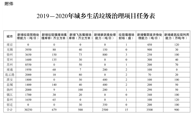 江蘇分類垃圾進(jìn)入“強(qiáng)制時(shí)代”,餐廚垃圾如何處理?建筑垃圾資源化利用怎樣進(jìn)行?江蘇省政府日前發(fā)布了《江蘇省城鄉(xiāng)生活垃圾治理工作實(shí)施方案》(簡(jiǎn)稱方案),根據(jù)方案,到2020年底,全省生活垃圾無(wú)害化處理設(shè)施處理能力滿足需求,無(wú)害化處理能力達(dá)到8.5萬(wàn)噸/日以上,城鄉(xiāng)生活垃圾無(wú)害化處理率達(dá)到98%以上,除按...
