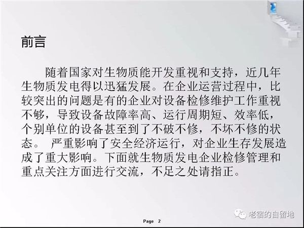 隨著國家對生物質(zhì)能開發(fā)總是和支持,近幾年生物質(zhì)發(fā)電得以迅猛發(fā)展。在企業(yè)運(yùn)營過程中,比較突出的問題是有的企業(yè)對設(shè)備檢修維護(hù)工作重視不夠,導(dǎo)致設(shè)備故障率高、運(yùn)行周期短、效率低,個別單位的設(shè)備甚至到了不破不修,不壞不修的狀態(tài)、嚴(yán)重影響了安全經(jīng)濟(jì)運(yùn)行,對企業(yè)生存發(fā)展造成了重大影響。下面就生物質(zhì)發(fā)電企業(yè)檢修管...