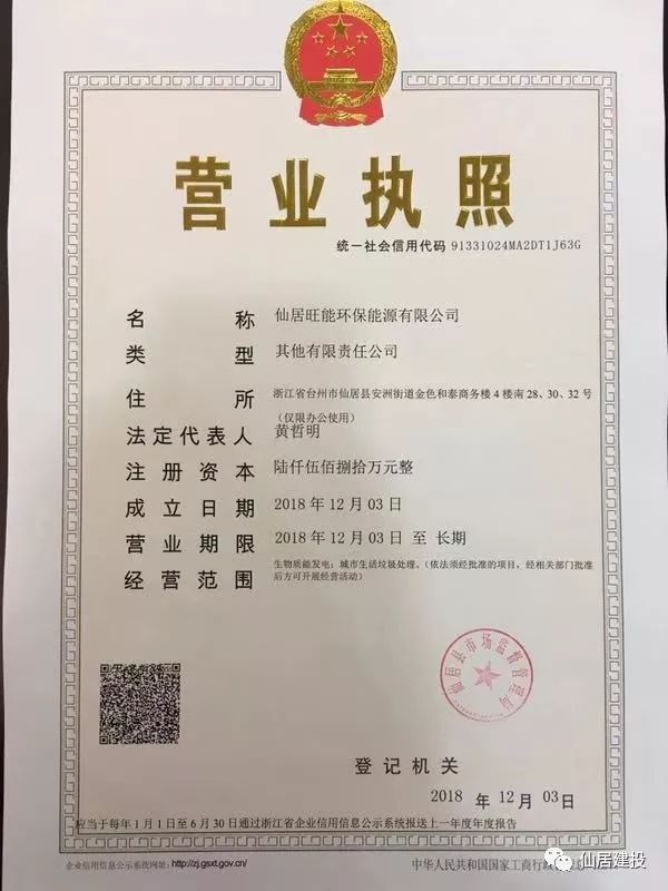 2018年12 月 3日,仙居縣市場監(jiān)督管理局頒發(fā)營業(yè)執(zhí)照。仙居旺能環(huán)保能源有限公司宣告成立?。?!實(shí)現(xiàn)了國企借力上市公司,創(chuàng)新發(fā)展、合作共贏,助力國資國企改革取得新成果。項(xiàng)目背景:仙居縣生活垃圾焚燒發(fā)電PPP項(xiàng)目由仙居縣人民政府授權(quán)仙居縣城市建設(shè)發(fā)展集團(tuán)有限公司作為政府方出資,與社會(huì)資本浙江旺能環(huán)保...
