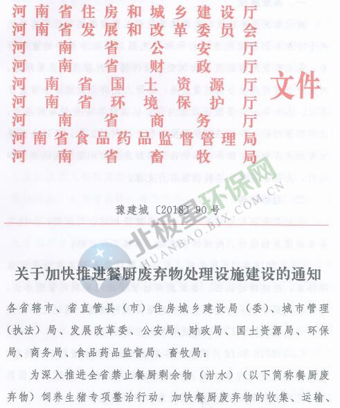 日前,河南省發(fā)布了關于加快推進餐廚廢棄物處理設施建設的通知,詳情如下: