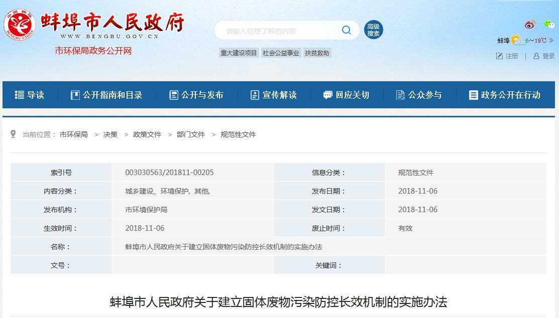 日前,蚌埠市發(fā)布了關(guān)于建立固體廢物污染防控長效機制的實施辦法,詳情如下:各縣(區(qū))人民政府,市政府各部門、各直屬機構(gòu)、駐蚌有關(guān)單位:為貫徹落實《安徽省人民政府關(guān)于建立固體廢物污染防控長效機制的意見》(皖政〔2018〕51號)、《安徽省環(huán)境保護(hù)條例》、《安徽省實施〈中華人民共和國固體廢物污染環(huán)境防治法...