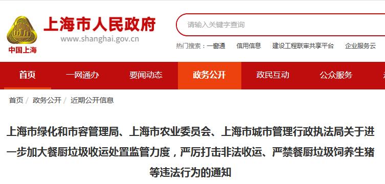 日前,上海市綠化和市容管理局、上海市農業(yè)委員會、上海市城市管理行政執(zhí)法局聯(lián)合發(fā)布了關于進一步加大餐廚垃圾收運處置監(jiān)管力度,嚴厲打擊非法收運、嚴禁餐廚垃圾飼養(yǎng)生豬等違法行為的通知,詳情如下:各區(qū)綠化市容管理部門、農委、城管執(zhí)法部門:為進一步貫徹落實黨中央、國務院以及上海市委、市政府對非洲豬瘟防控工作的...