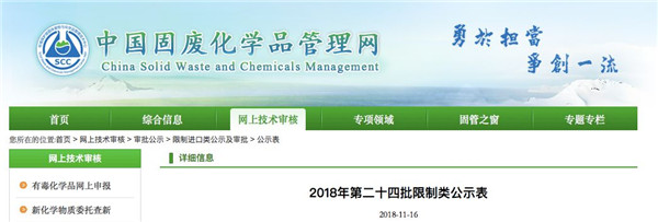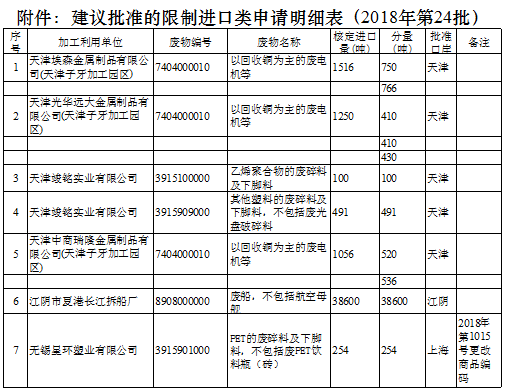 日前中國固廢化學品管理網發(fā)布了《建議批準的限制進口類申請明細表(2018年第24批)》,其中涉及30家企業(yè)具體內容如下: