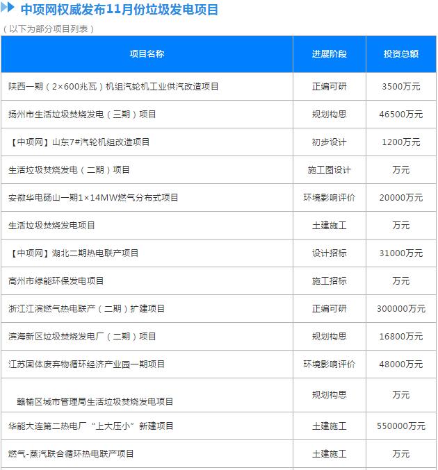 11月份全國擬在建垃圾發(fā)電項目1 華能國際電力開發(fā)公司銅川照金電廠一期(2×600兆瓦)機組汽輪機工業(yè)供汽改造項目預算總投資額:3500萬元進展階段:正編可研項目所在地:陜西省銅川市項目建設詳情:華能國際電力開發(fā)公司銅川照金電廠一期(2×600兆瓦)機組汽輪機工業(yè)供汽改造項目,1、項目建設地址:陜西...
