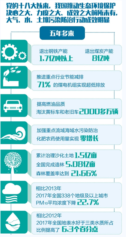 近五年來,我國生態(tài)環(huán)境保護(hù)成效顯著。一方面,能源消費(fèi)結(jié)構(gòu)不斷優(yōu)化,單位GDP能耗下降20%以上,重點(diǎn)城市重污染天數(shù)減少一半,森林覆蓋面積不斷增加;另一方面,制度建設(shè)日益完善,新環(huán)保法增加按日連續(xù)計(jì)罰等執(zhí)法手段,大氣污染防治法、水污染防治法、環(huán)境影響評(píng)價(jià)法、土壤污染防治法等陸續(xù)制定修訂,使我國污染防治...