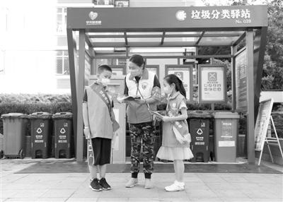 在北京市海淀區(qū)新科祥園社區(qū),社區(qū)工作人員(中)為“綠色明天”環(huán)保志愿小隊(duì)隊(duì)員李夢(mèng)鴻一(右)、施柏涵介紹垃圾分類知識(shí)。新華社記者 任超攝住建部、生態(tài)環(huán)境部等6部委近日聯(lián)合印發(fā)《綠色社區(qū)創(chuàng)建行動(dòng)方案》(以下簡稱《方案》),要求綠色社區(qū)創(chuàng)建要與居民自治機(jī)制建設(shè)、社區(qū)服務(wù)體系建設(shè)有機(jī)結(jié)合起來,營造社區(qū)宜居環(huán)...