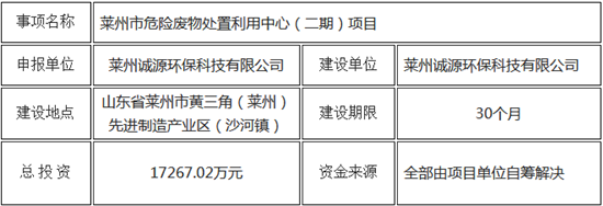 日前煙臺市發(fā)展和改革委員會發(fā)布了《關(guān)于萊州市危險廢物處理中心(一期)項(xiàng)目核準(zhǔn)前公示核準(zhǔn)前公示》,公示顯示該項(xiàng)目地址位于山東省萊州市黃三角(萊州)先進(jìn)制造產(chǎn)業(yè)區(qū)(沙河鎮(zhèn)),建設(shè)內(nèi)容包括罐區(qū)、固化暫存庫、綜合利用暫存庫、物化車間、綜合利用車間、固化車間(化驗(yàn)室)、廢氣處理車間、污水處理站等??偼顿Y105...
