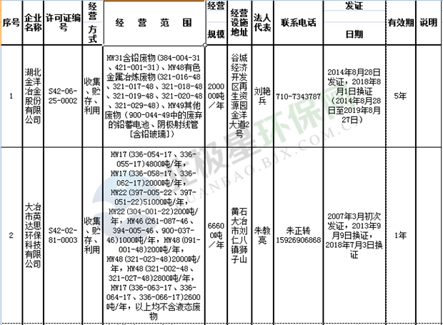 日前省環(huán)保廳發(fā)布了《湖北省經(jīng)營許可證》單位名錄(截至2018年10月12日,共108家),且附有聯(lián)系電話,具體內(nèi)容如下: