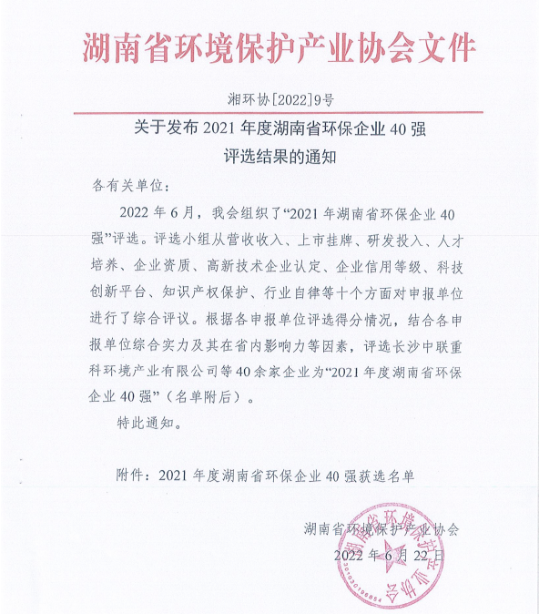 2022年6月24日,中鐵環(huán)境被湖南省環(huán)境保護(hù)產(chǎn)業(yè)協(xié)會評選為2021年度湖南省環(huán)保企業(yè)40強(qiáng)。 中鐵環(huán)境自2018年成立以來,主營業(yè)務(wù)持續(xù)聚焦污水處理、固廢處置領(lǐng)域,并大力發(fā)展生態(tài)修復(fù)、綠色建造等領(lǐng)域業(yè)務(wù),突出環(huán)保裝備和材料的創(chuàng)新研發(fā),采用“裝備+服務(wù)”管家新模式,為客服提供...