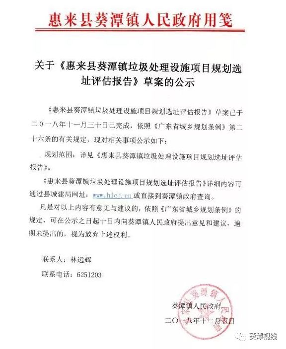 日前廣東揭陽惠來縣葵潭鎮(zhèn)政府發(fā)布了關(guān)于《惠來縣葵潭鎮(zhèn)垃圾處理設(shè)施項(xiàng)目規(guī)劃選址評(píng)估報(bào)告》草案的公示,具體內(nèi)容如下:原標(biāo)題:關(guān)于《惠來縣葵潭鎮(zhèn)垃圾處理設(shè)施項(xiàng)目規(guī)劃選址評(píng)估報(bào)告》草案的公示