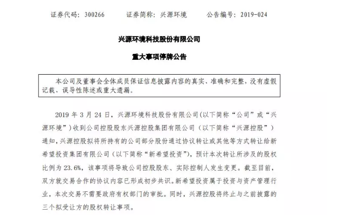 興源控股擬將所持有的公司部分股份通過協(xié)議轉讓或其他等方式轉讓給新希望投資集團有限公司,預計本次轉讓所涉及的股權比例為23.6%,該事項將導致公司控股股東、實際控制人發(fā)生變更。據(jù)悉,新希望投資是新希望集團旗下的投資平臺。新希望集團創(chuàng)始人劉永好,曾獲得中國改革風云人物等稱號,幾次榮登中國首富的位置。 今...