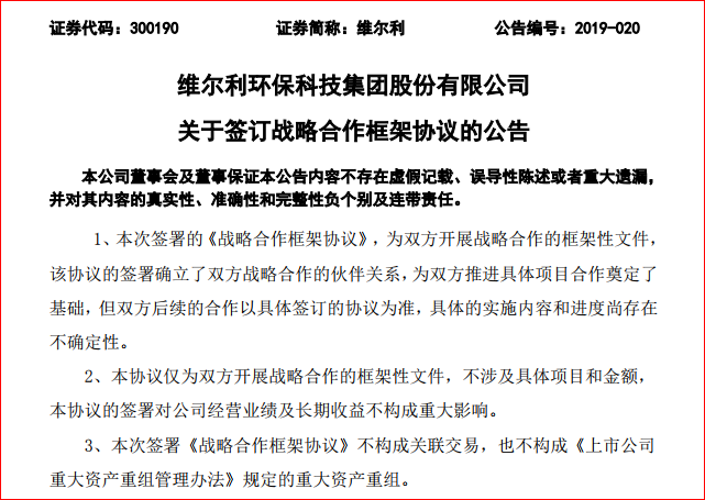 2019年3月18日,維爾利環(huán)??萍技瘓F(tuán)股份有限公司(簡(jiǎn)稱(chēng)“維爾利環(huán)保”)發(fā)布公告稱(chēng),公司近期與常高新集團(tuán)有限公司(簡(jiǎn)稱(chēng)“常高新”)簽訂了《戰(zhàn)略合作框架協(xié)議》,共同深耕常州環(huán)保市場(chǎng)。 公告指出,本次合作將以項(xiàng)目、資本、技術(shù)、研發(fā)、產(chǎn)品、綜合金融服務(wù)為紐...