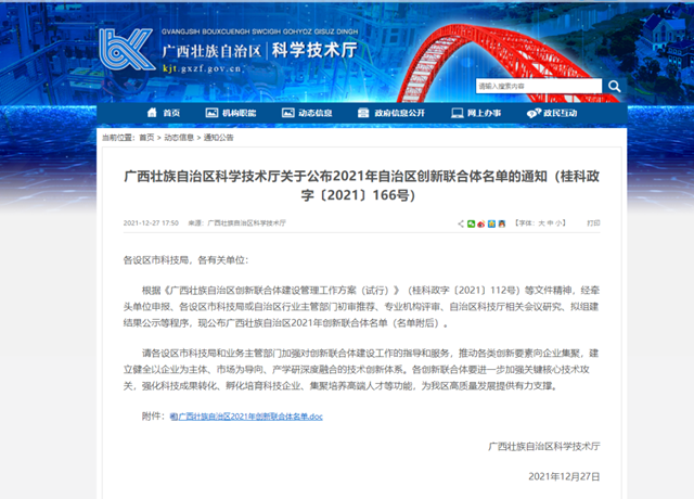 近日,由博世科牽頭組建的2021年自治區(qū)創(chuàng)新聯(lián)合體“廣西壯族自治區(qū)生態(tài)環(huán)境治理創(chuàng)新聯(lián)合體”獲批自治區(qū)科技廳認(rèn)定,成為廣西首批4家創(chuàng)新聯(lián)合體之一。 2017年開始,博世科牽頭組建的廣西環(huán)境污染治理與生態(tài)修復(fù)產(chǎn)業(yè)技術(shù)創(chuàng)新戰(zhàn)略聯(lián)盟獲得批復(fù)并試點(diǎn)運(yùn)行,致力于在政產(chǎn)學(xué)研用相結(jié)合的協(xié)同創(chuàng)...