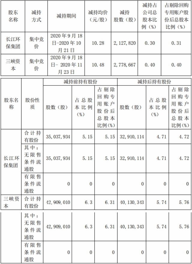 2021年3月19日,中節(jié)能國禎環(huán)??萍脊煞萦邢薰景l(fā)布《關(guān)于持股 5%以上股東股份減持計劃期滿暨實施結(jié)果的公告》。 即長江生態(tài)環(huán)保集團有限公司與其一致行動人三峽資本控股有限責(zé)任公司計劃在6個月內(nèi)以集中競價交易、大宗交易或換購交易型開放式指數(shù)證券投資基金(ETF)方式減持不超過33,975,437股...