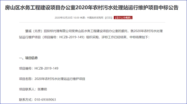 截圖源于中國(guó)政府采購(gòu)網(wǎng) 源于中國(guó)政府采購(gòu)網(wǎng)近日公開(kāi)消息,由北京金河水務(wù)建設(shè)集團(tuán)有限公司、華航環(huán)境發(fā)展有限公司、北京中聯(lián)環(huán)工程股份有限公司組成的聯(lián)合體預(yù)中標(biāo)北京市房山區(qū)農(nóng)村污水治理工程(處理站一片區(qū)、二片區(qū))PPP項(xiàng)目(編號(hào):GXTC-A-1961004)。運(yùn)維服務(wù)水費(fèi)單價(jià)為4.11元/㎡、可用性年付...