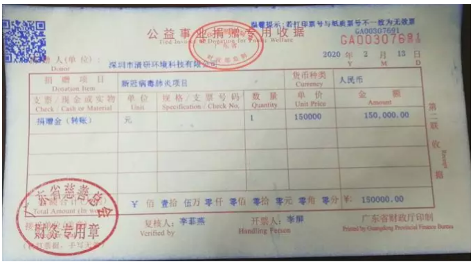 為表達(dá)對(duì)前線抗疫戰(zhàn)士的敬意和支持,2020年2月13日,深圳市清研環(huán)境科技有限公司向廣東省慈善基金會(huì)捐助現(xiàn)金15萬元。同時(shí),清研環(huán)境骨干員工組成的“戰(zhàn)狼團(tuán)隊(duì)”也自發(fā)捐助3.25萬元用于為抗疫戰(zhàn)士購買愛心物資,其中第一批愛心物資已于當(dāng)天交給支援武漢的廣東醫(yī)療隊(duì)醫(yī)護(hù)人員。廣東省慈...